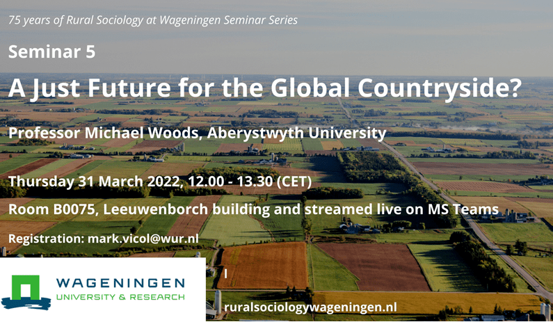 We are excited to welcome Professor Michael Woods from Aberystwyth University to Wageningen to present in our RSO 75 years anniversary seminar series. The title of Prof. Woods talk is “A Just Future for the Global Countryside?”