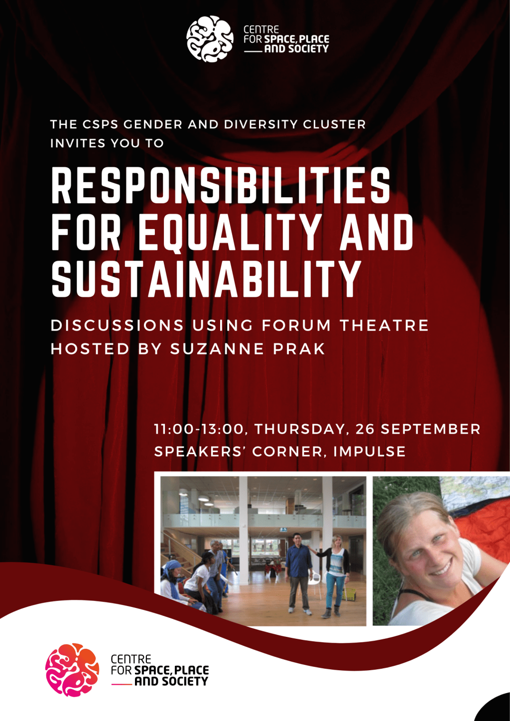 Join us for an engaging and interactive event that explores critical issues around equality and sustainability using the powerful medium of Forum Theatre. Led by Suzanne Prak, this session will invite participants to step into real-world scenarios and engage in discussions about the responsibilities we share in creating a more just and sustainable future.