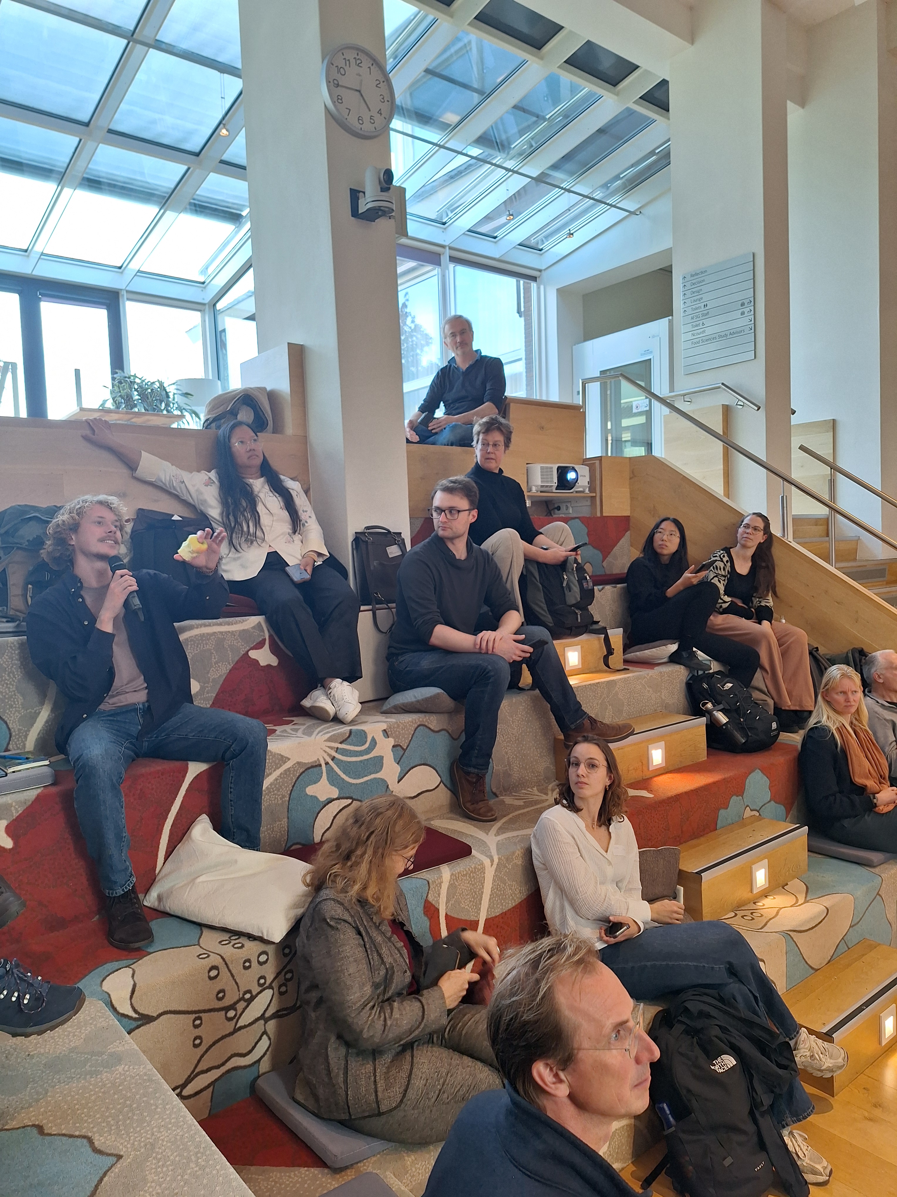 The day started with a morning program dedicated to PhD Candidates working on topics linking environment and health. A dozen PhD students and researchers from various chair groups (HSO, GEO, LAR, FNP, etc.) attended. As part of this Prof. David Sheffield from the Nature Connectedness Research Group at University of Derby gave a workshop on “Methods for engaging communities in Health and Environment research” which got the participants discussing about the communities they are working with and what the challenges and opportunities are in this process. The workshop was followed by a networking event during which the PhD candidates had more time to get to know each other and exchange about their work. After a productive and insightful morning, there was time to experience nature connectedness in practice. Ania Ektate from Spectrum guided the participants into an outdoor meditation in the park Blauwe Bergen, close to campus.