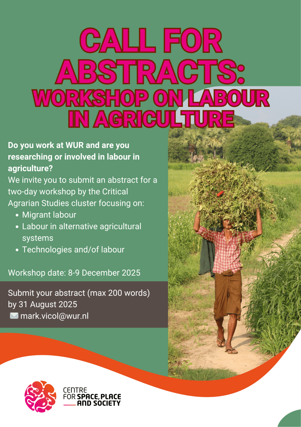 The Critical Agrarian Studies cluster of the Centre for Space, Place and Society is organizing a two-day workshop, 8-9th December 2025 to bring together researchers working on this topic. The aim of the workshop is to inspire a collective research program around labour in agriculture at WUR and beyond.