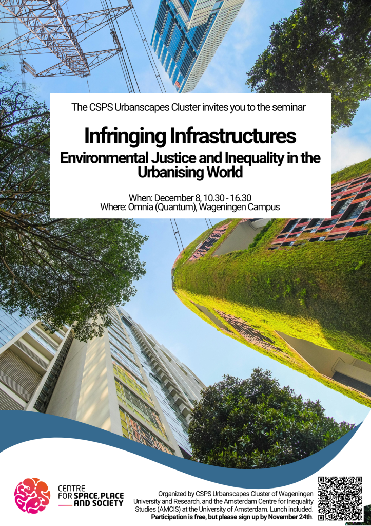We are pleased to invite you to the seminar “Infringing Infrastructures: Environmental Justice and Inequality in the Urbanising World,” jointly organised by Wageningen University and the University of Amsterdam under the SSH Sectorplan Social Inequality and Diversity.